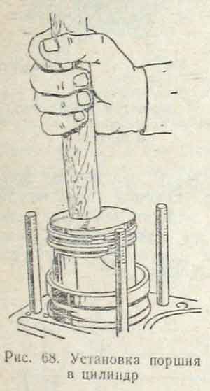 Ленту-щуп закладывают между гильзой и поршнем со стороны